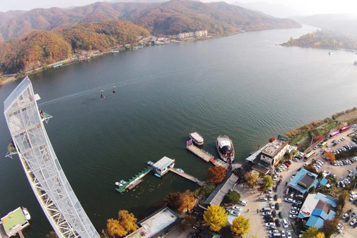 가평군, 경기관광공사, ㈜남이섬이 친환경 관광활성화를 위하여 설치한 레저시설로 남이섬 가평선착장에 설치된 높이 80m 의 타워에서 자라섬 방향으로 640m, 남이섬 방향으로 940m 를 와이어로프를 이용해 무동력으로 활강하듯 내려가는 아시아 최대규모의 와이어 라이딩 시설이다. (자료출처 : 대한민국 구석구석 - korean.visitkorea.or.kr) 위치 : 펜션에서 차량으로 약 17분, 11.6km