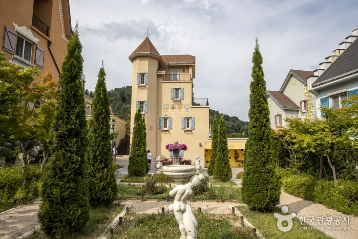 청평댐에서 남이섬 방향으로 호숫가 길을 따라 10km쯤 가다 보면 왼쪽 언덕에 이국적 건물들이 옹기종기 모여 있는 걸 볼 수 있다. 건물만 보면 지중해 연안의 마을 같기도 하고 호명산의 수려한 주위 배경과 함께 보면 마치 알프스 산록의 전원마을 같은 이곳은, 프랑스 문화마을 쁘띠프랑스이다. 쁘띠프랑스의 컨셉트는 ''꽃과 별, 그리고 어린왕자''이다. 쁘띠프랑스는 청소년수련시설(고성청소년수련원)을 겸한 프랑스 문화마을로, 가평군 청평면 고성리 일대에 조성됐다. 쁘띠프랑스는 프랑스풍 건물로 이루어져 있으며 관람객들은 숙박을 하면서 프랑스의 의식주 문화를 체험할 수 있다. 이밖에 쌩텍쥐페리의 일생과 어린왕자 등 작품세계를 설명한 쌩텍쥐페리 기념관, 200년 된 오르골에서 나오는 감미로운 선율을 들을 수 있는 오르골 하우스, 프랑스 고택을 그대로 들여와 지은 프랑스 전통주택 전시관, 프랑스의 상징인 ‘닭’ 조각과 그림, 자기를 비롯해 프랑스 및 유럽에서 수집한 골동품을 볼 수 있는 골동품 전시관 등에서도 독특한 프랑스 문화를 체험할 수 있다. 최대 200여 명 수용 가능한 4∼10인용 객실을 갖추고 있어 단체수련회나 MT 장소로도 좋은 곳이다. (자료출처 : 대한민국 구석구석 - korean.visitkorea.or.kr) 위치 : 펜션에서 차량으로 약 10분, 6.9km